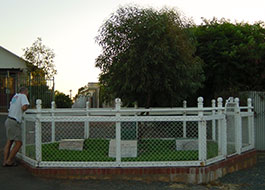 | ホテルで休憩後、夕刻、Two Up Schoolを見学に行く。Two Up自体の説明は別項にあるので参照してほしい。 Two Up Schoolの場所はKalgoorlieからクルマで北へ10分ほどの距離、Broad Arrowへ向かう途中にある。路肩に「2Up」と殴り書きしたをトタン板があるだけなので、入り口は見落としやすい。 さらに道路から1kmほど入り込むと、Schoolというイメージからはほど遠い感じの周囲をトタン板で囲っただけのきわめて質素な建物が現れる。周囲には数台の車が駐車していて、すでに観光客が来るような場所でない雰囲気が漂っている。トタン板の壁には「アルコールの持込み不可と18歳以下立入禁止」の表示がある。 Two Upを行っている会場は、この中にあり、直径5mほどのアスファルトで固められた場所で行われている。 |