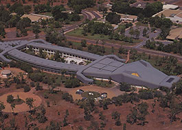 この日の宿は、Jabiruにある高級ホテル「Gagadju Crocodile Hotel」。 全長25m、建物全体の形がワニのようになっていていかにもKakaduといった感じのホテル。 口の部分が入り口、頭部はレストラン、腹部にはプールや中庭があるなどユニークなレイアウトになっている。 全景の写真は絵はがきをスキャンしたもの。 Gagadju Crocodile Hotel Flinders St., Jabiru NT 0886 Tel : 8979-2800 / Fax : 8979-2707 |