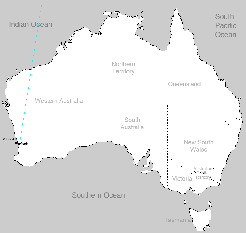 Perthへ来ると毎回必ず訪れているRottnest Island。いつもなら旅の終盤に訪問するのだが、今回は2日目に訪れてみた。 しかし、今回はこれが裏目に出てしまう。ここ数年、西オーストラリアは異常気象だと聞いていたが、例年なら快晴のはずのRottnest Islandも今回は雨に遭遇。それも雷を伴ったスコールには参った。出発時のPerthは写真左のように快晴だったが、島へ到着する海上で雲行きは怪しくなり、島内滞在中ではときおり強く降る雨を避けながらの移動となる。 |