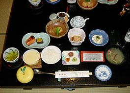 ツーリング二日目。 昨夜は疲れも手伝って早い時間に就寝。しかも爆睡状態で寝不足は解消。 おかげで今朝はすっきりと6:00頃起床。 さっそく朝風呂を楽しむ。 2つある内風呂は時間帯によって利用できる男女入れ替制なのだが、五右衛門風呂式の露天風呂は片方にしかない。 そこで昨夜は利用できなかった露天風呂を楽しむが、かなり小さめのサイズに入浴時はまるでたこつぼに入ったタコ状態で使用感はいまいちといった感じ。 入浴後、宿の中庭と庭園の散策を楽しむ。 中庭は竹林に囲まれ、庭の片隅には船の形をした足湯もある。 朝食前に昨日の走りで汚れたバイクを軽く洗車。その後、朝食を楽しむ。例によって完食。 |